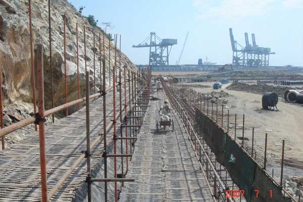 寶鋼馬跡山港工程位于泗礁本島西南1.5km處,本港至上海吳淞口約60海里,距北侖港74海里,從上海港到各大洲的國際航線均從嵊泗海域經(jīng)過。馬跡山港圍堤、陸域形成工程所需土石料由馬跡山本地就地開山采取,由寶山鋼鐵(集團)投資愈4000萬,我公司承接的寶鋼馬跡山港開山采石工程,自1996年建設(shè)以來,完成開山采石量560萬m3,爆破擠淤180萬m3,回填港區(qū)場地40萬㎡,山體護坡4萬m3,被評為部級優(yōu)良工程。